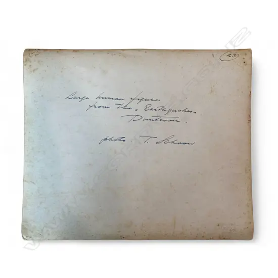 Origin/Date: New Zealand, c.1947 Title: Large human figure from the earthquake Duntroon Medium: photographic print Dimensions: 25.3 x 30.3cm