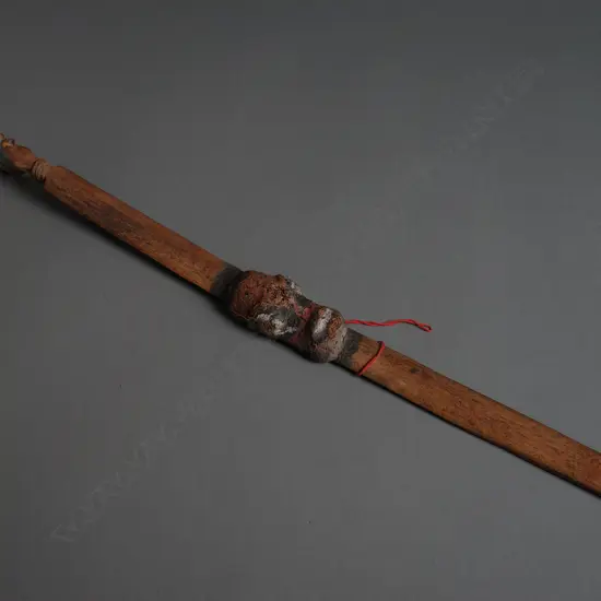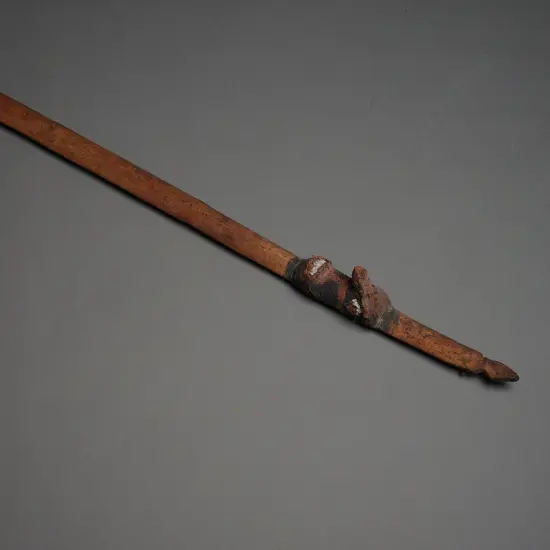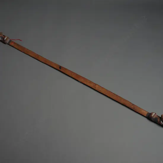 made of wood, fibre and clay. Fibrous clay heads to both ends, one nose absent. L.138cm