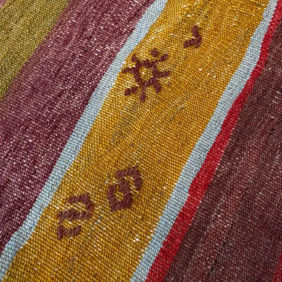 wool, flatweave with bands of supplementary weft, multi-coloured hooked lozenge. 162 x 153.5cm