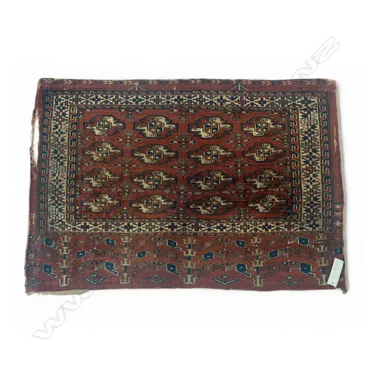 wool, red ground, sixteen güls in main part. 102 x 71cm