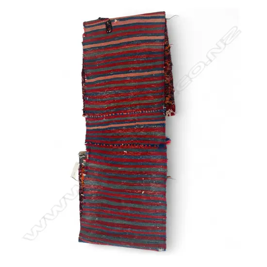 wool, flatweave/soumac, starred orange borders, striped flatweave, repairs. 217 x 49cm