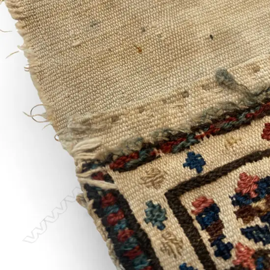 supplementary weft, double form, white ground, polychrome floral lattice repeat. 65.7 x 22cm