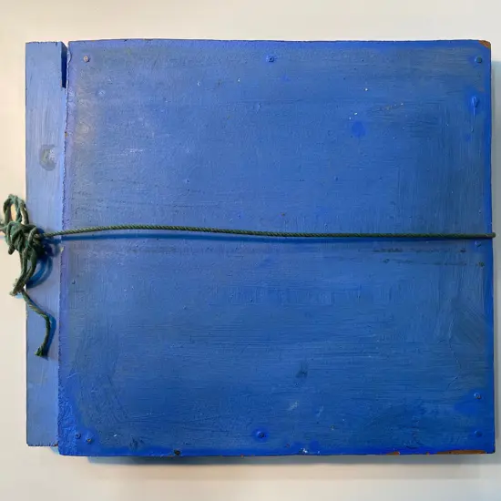 Title: ‘EIWOO' Medium: mixed media on paper artist's book in wood container Dimensions: 20.2 x 19.0 ; 29.7 x 26.4cm