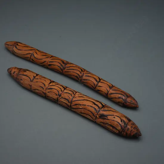 burned, sectioned pattern. L. 21.5cm; 24.2cm