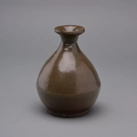 Guangdong, China, c.1875. Pyriform shaped bottle of buff coloured clay. Flat, indented base, integral foot ring, globular body, short neck with a narrow mouth and an everted rim; the join line visible at mid body. Excluding the resting surface, covered in a thin brown glaze the upper body and interior with a brown glaze. H.17cm. Dia.12.8cm Origin/Date: China Guangdong, c.1866 c.1900 Cat. Note/Condition/Ref.: Very Good. For a discussion of Ng ka py bottles found in New Zealand archaeological sites see: Neville A Ritchie, Archaeology and history of the Chinese in southern New Zealand during the nineteenth century: a study of acculturation, adaptation, and change (Unpublished PhD thesis, University of Otago, 1986), pp. 232-234. For a discussion of possible sites of production of Ng ka py bottles see: Philip P Choy, 'Interpreting "Overseas Chinese" ceramics found on historical sites: manufacture, marks, classification, and social use', SHA Research Resource (March 2014), pp. 15-16. https//ourarchive.otago.ac.nz/handle/10523/6404, https//sha.org/assets/documents/Choy%20%20pottery%20research%20%20final%20version.pdf