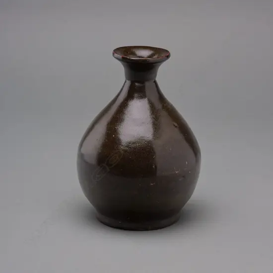 Guangdong, China, c.1875. Pyriform shaped bottle of buff coloured clay. Flat, indented base, integral foot ring, globular body, short neck with a narrow mouth and an everted rim. Excluding the resting surface, covered in a thick dark brown glaze. H.17.5cm. Dia.12.4cm Cat. Note/Condition/Ref.: Very Good. For a discussion of Ng ka py bottles found in New Zealand archaeological sites see: Neville A Ritchie, Archaeology and history of the Chinese in southern New Zealand during the nineteenth century: a study of acculturation, adaptation, and change (Unpublished PhD thesis, University of Otago, 1986), pp. 232-234. For a discussion of possible sites of production of Ng ka py bottles see: Philip P Choy, 'Interpreting "Overseas Chinese" ceramics found on historical sites: manufacture, marks, classification, and social use', SHA Research Resource (March 2014), pp. 15-16. https//ourarchive.otago.ac.nz/handle/10523/6404, https//sha.org/assets/documents/Choy%20%20pottery%20research%20%20final%20version.pdf