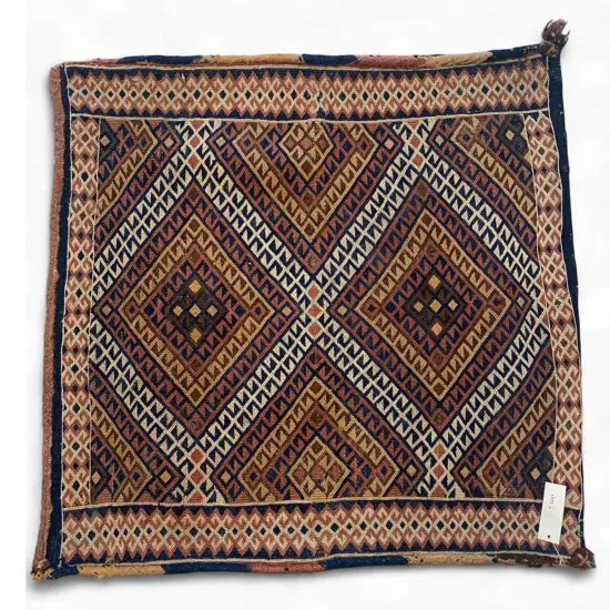 Bag – wool, - Anatolia - central field with two hooked diamond stripe medallions - braided sides. 80 x 79cm