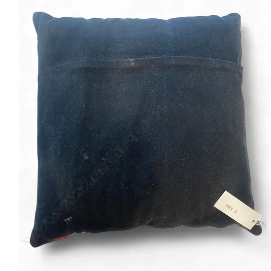 Cushion - wool/cotton, - flatweave fragment - madder - cream/white triangle pattern medallion. 38 x 38cm