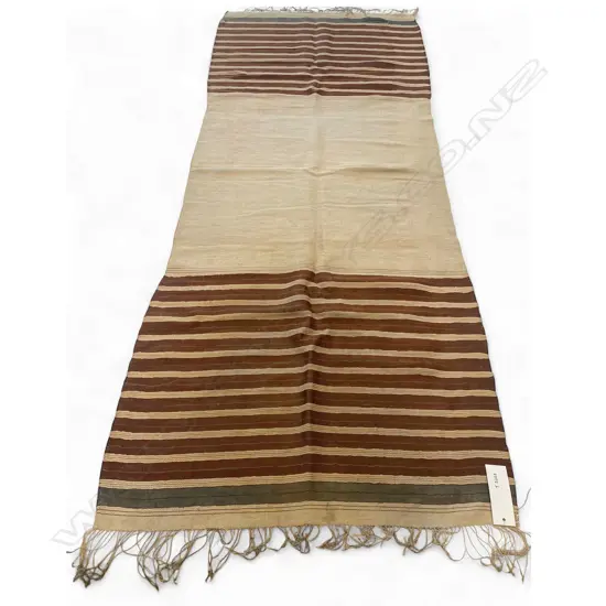 Mahdia - Tunisia - cream ground red/green bands at ends - plain tassels. 152 x 63cm
