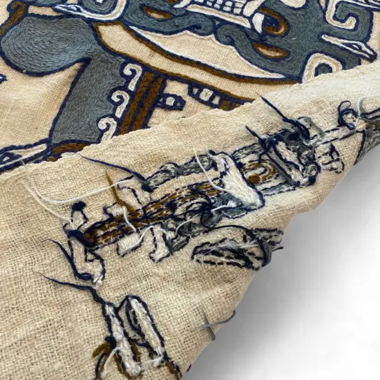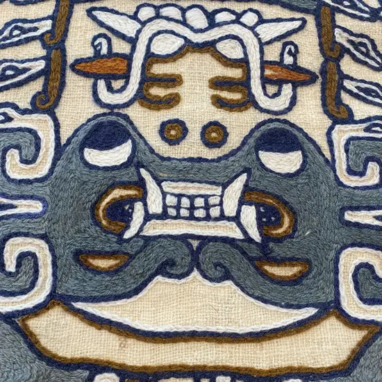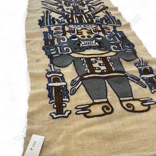 Central America - cream wool embroidered with Aztec Figure. 152 x 55cm