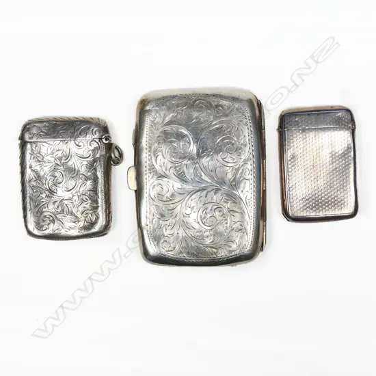 Two sterling silver vesta and a silver cigarette case, all dented. Total 105gm