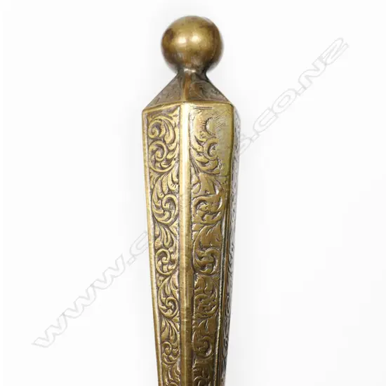 A gilt brass bouquet holder, possibly French, the cone cast and pierced with acanthus and lilies, on a hexagonal tapering handle. H.155mm