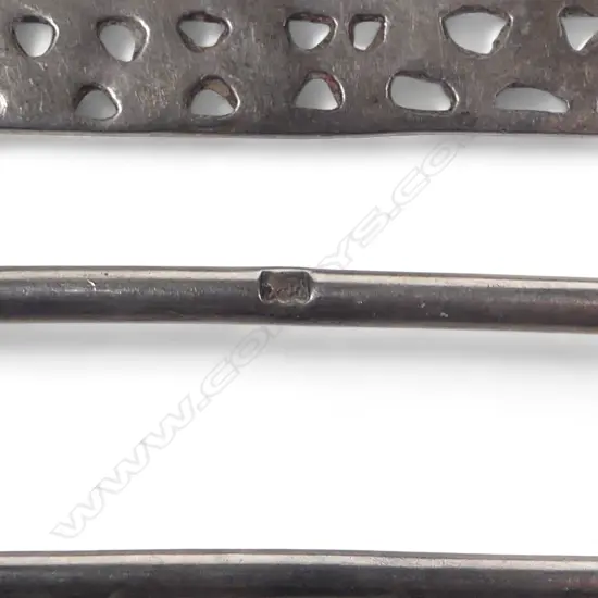 A large late Victorian sterling silver sash belt buckle with two prongs, the cast and pierced frame with figurative panels. London 1899 by Samuel Jacob. 95 x 70mm