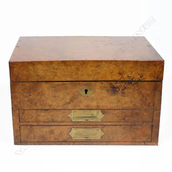 A 19thC homeopathic apothecary box with two fitted drawers,