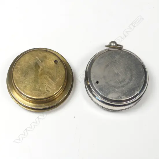 A brass cased small metric barometer-altimeter, and a silver plated cased French pocket aneroid barometer-altimeter,