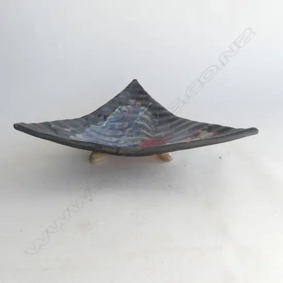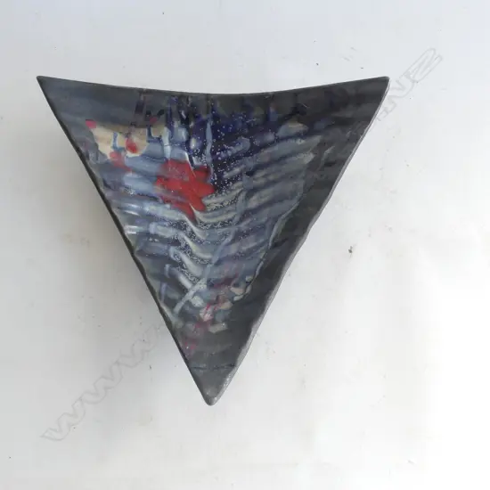 SCOTTISH TRIANGULAR CERAMIC STUDIO DISH, SOME REPAIRS