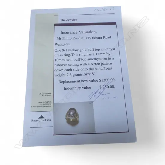 9CT GOLD AND AMETHYST? DRESS RING 7.3gms (VALUATION) SIZEU