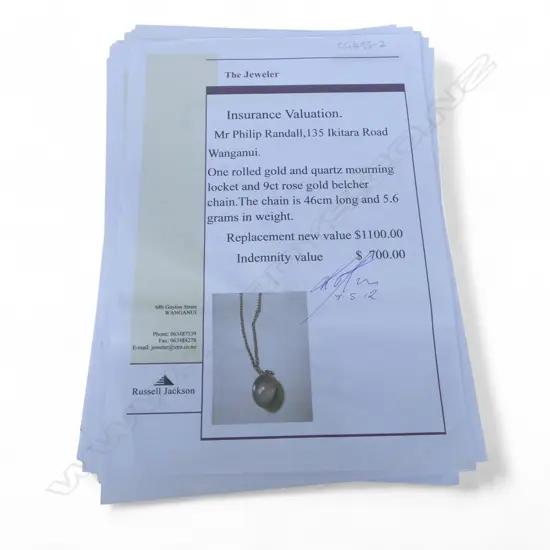 VICTORIAN ROLLED GOLD AND QUARTZ MOURNING LOCKET WITH 9CT ROSE GOLD BELCHER CHAIN 5.6gms