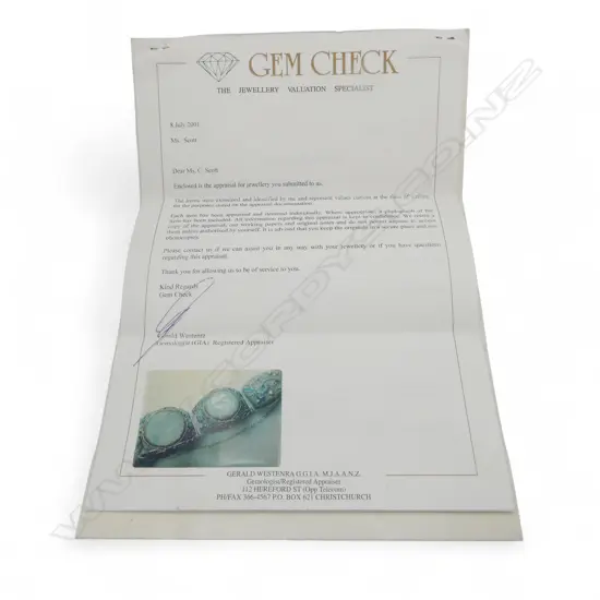 Enamelled bracelet jade set panels with valuation
