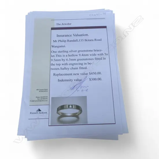 STERLING SILVER AND POUNAMU BANGLE with valuation