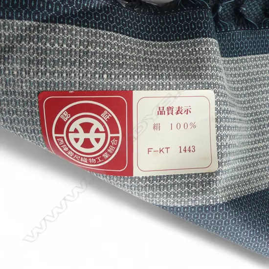 1980's NISHIJIN TEXTILE (Kyoto) JAPANESE ROLL OF PATTERNED SILK L.12m. W.360mm. New old stock blue black fine pattern