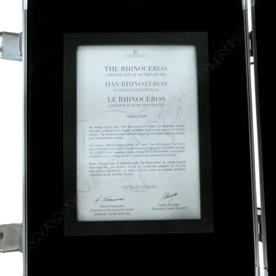 SWAROVSKI CRYSTAL 'THE RHINOCEROS' #2362/10000 2008 315x120x150mm, BOXED w. CERTIFICATE. See note below...