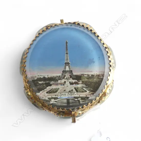 VINTAGE 'Tour Eiffel' GILT METAL & GLASS JEWEL BOX. Dia.90mm.