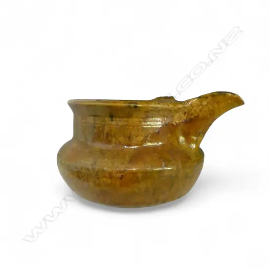 HAND MADE POTTERY JUG POSSIBLY JOVA RANCICH slotted spout. Incised top. Rounded base. Unmarked. Dia.140mm