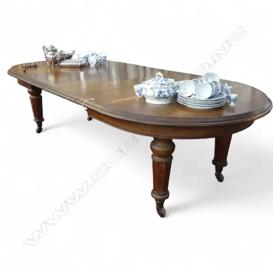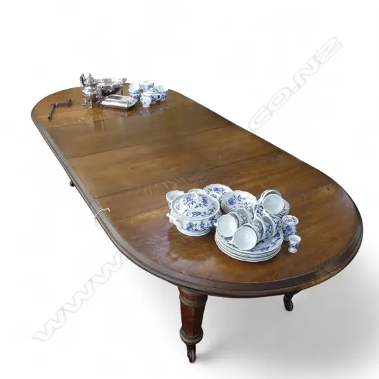 VICTORIAN OAK D-END DINING TABLE w. 2 LEAVES & CRANK 2730x1245x735mm (MAX SIZE)
