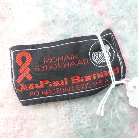 'SYBOKHAAR Jan Paul Barnard' MOHAIR BLANKET soft pink & aqua tones. Labelled