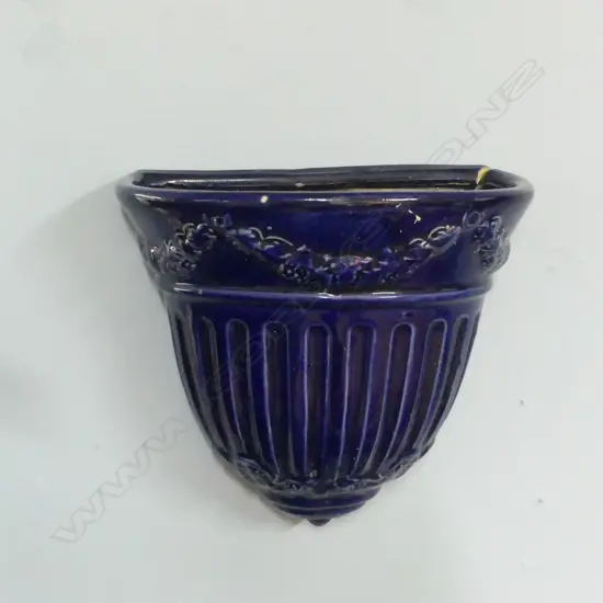 3 BLUE GLAZED WALL PLANTER POTS H.270mm