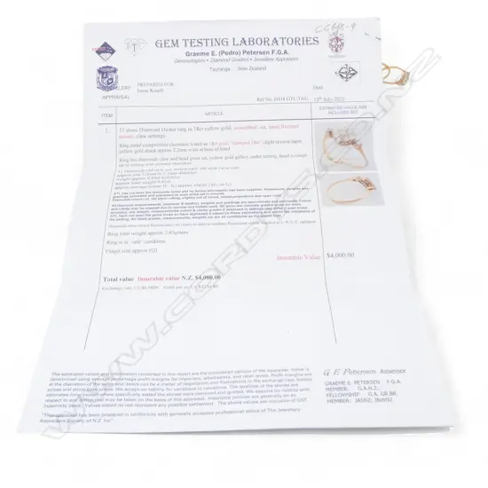 the diamonds noted on the valuation as mixed early old style Swiss cuts. Graded I-K & SI 1/2 TO I1