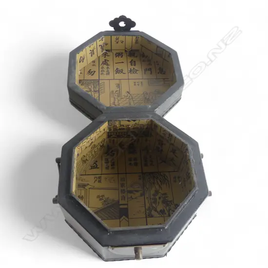 ORIENTAL OCTAGON BOX w DRAGON MOTIF, H.110mm, Dia.150mm & HEAVY GLASS COMPORT, H.200mm