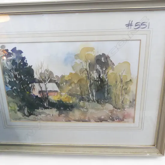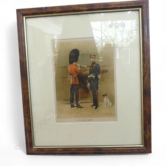 5 ART WORKS; 2 LANDSCAPE WCs, 1913 PHOTO 95mm dia, SCOTS GUARDS PRINT, SIGNED LANDSCAPE ETCHING 200x280mm