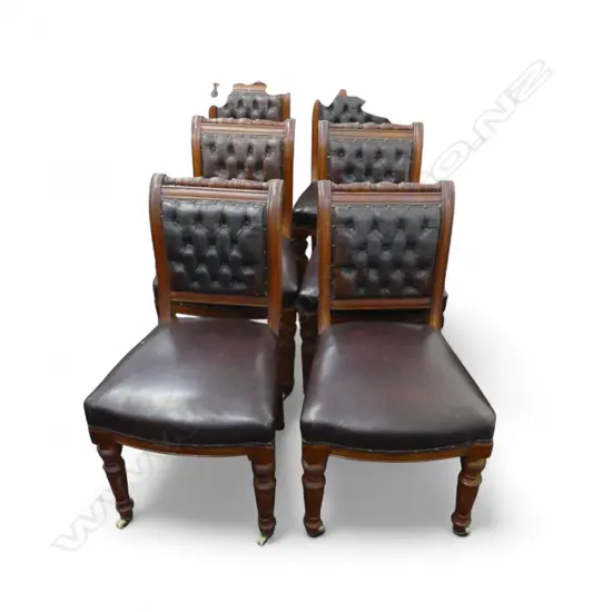 SET OF 6 NZ COLONIAL LEATHER BUTTON BACK DINING CHAIRS
