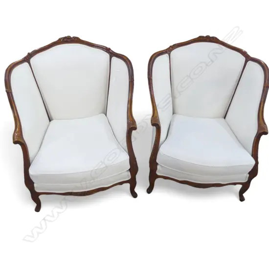 PR BERGERE ARMCHAIRS IN WHITE LINEN 750x900x940mm