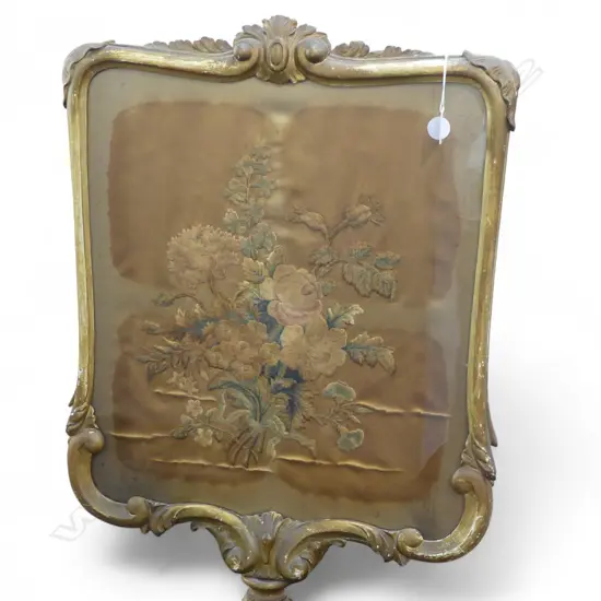 VICTORIAN GILT WOOD POLESCREEN w. EMBOIDERED SILK WORK