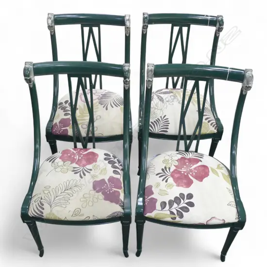 SET 4 DESIGNER FRENCH STYLE GREEN LACQUER CHAIRS with swan neck head highlights