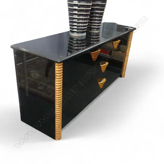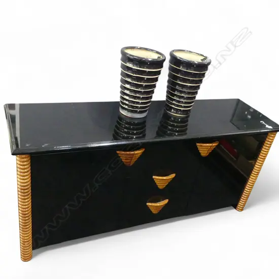 c.1990's DESIGNER BLACK LACQUER & WOOD highlight LOW SIDEBOARD 1670 X 480 X 760mm. Prov. From the home of a retired....