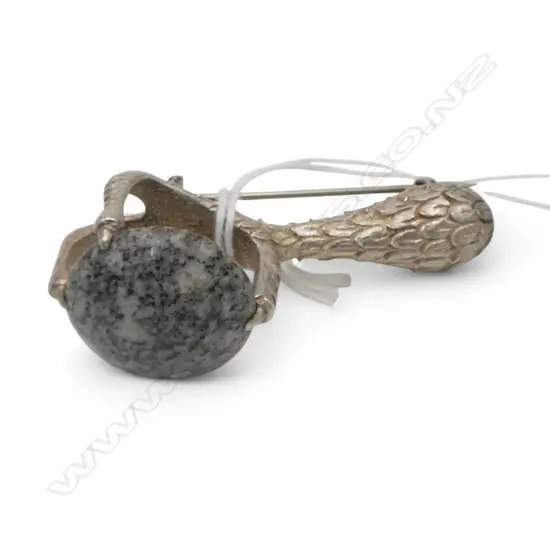 Large grey mottled agate and silver eagles claw lge brooch 21gms