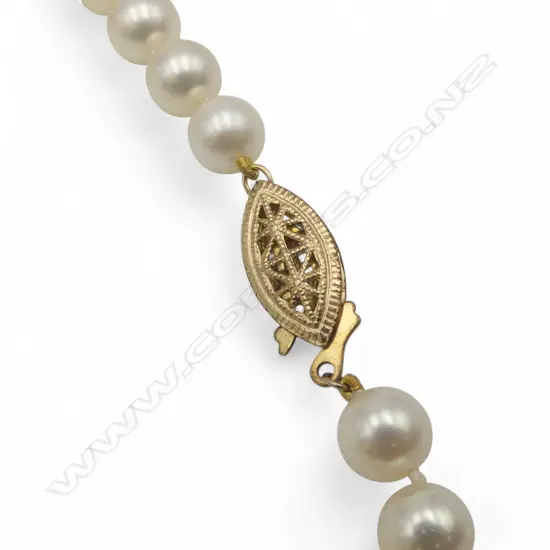 a single strand of 53 Akoya cultured pearls (silver cream tone