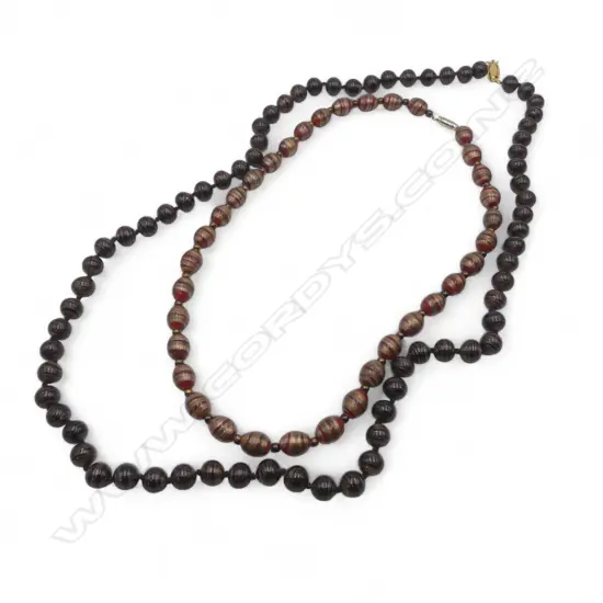 2 VENETIAN MURANO NECKLACES, GOLDEN HI-LIGHTS, L.800 & 520mm handknotted w nice clasp