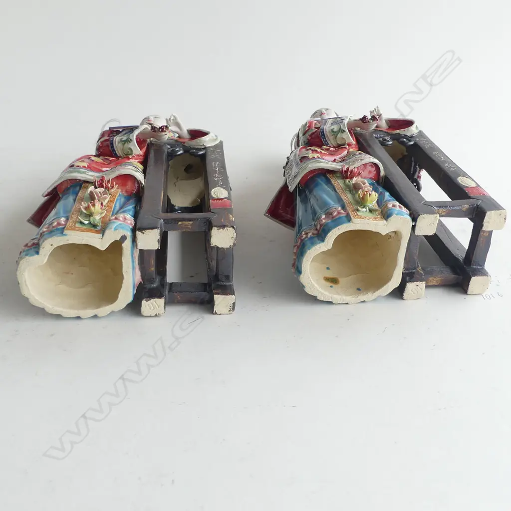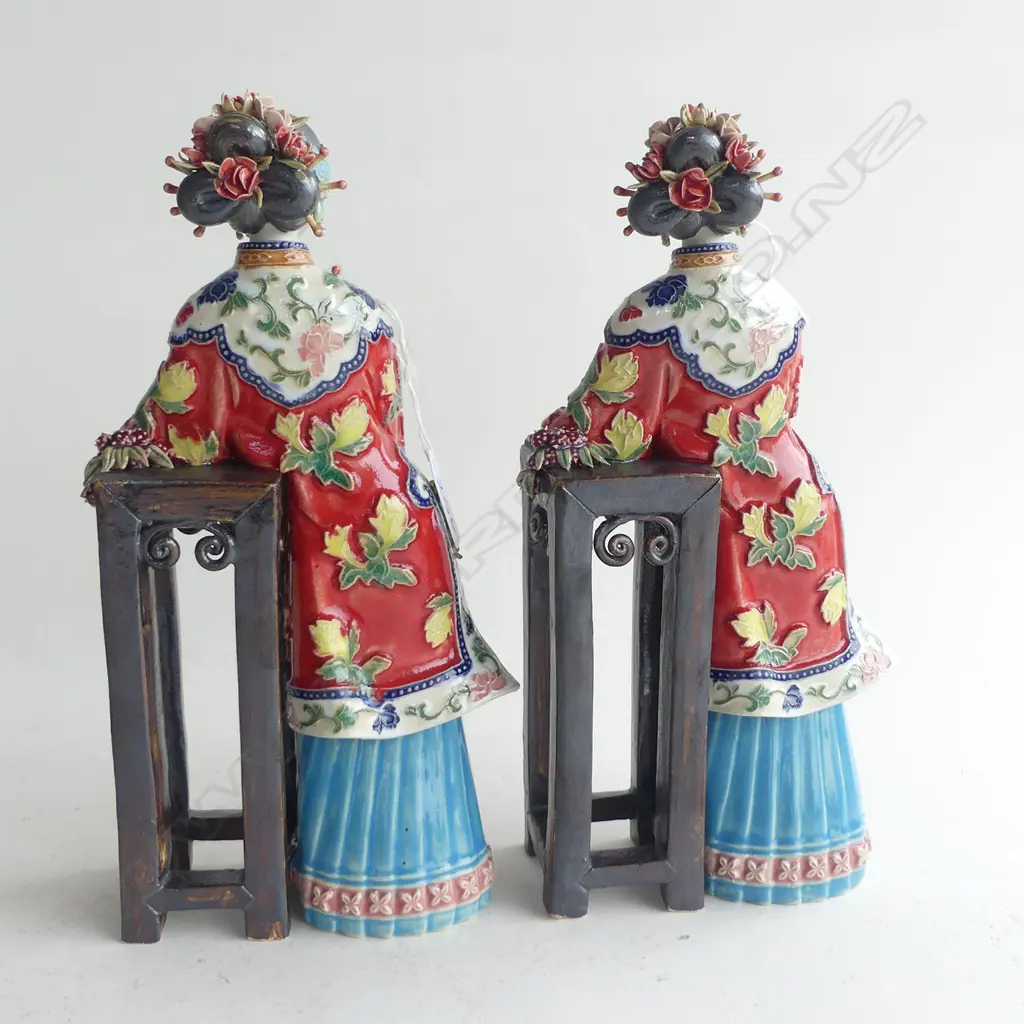 A PAIR OF CHINESE SHIWAN FIGURINES DEPICTING QING DYNASTY WOMEN (ONE WITH SMALL LOSS ON TOP OF FINGER) 290mm (H) in box