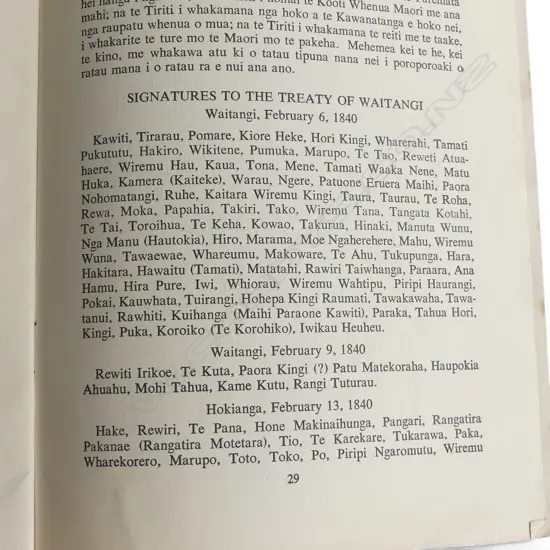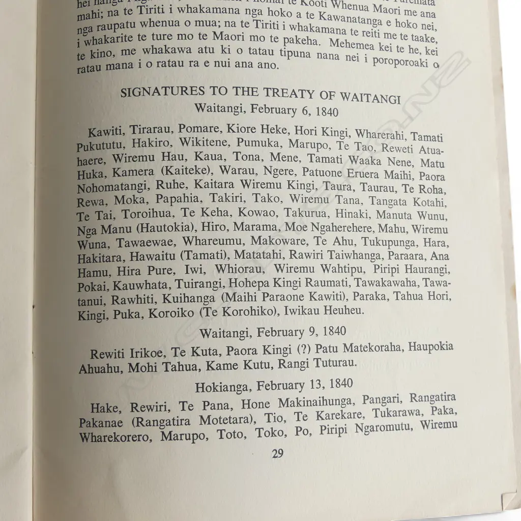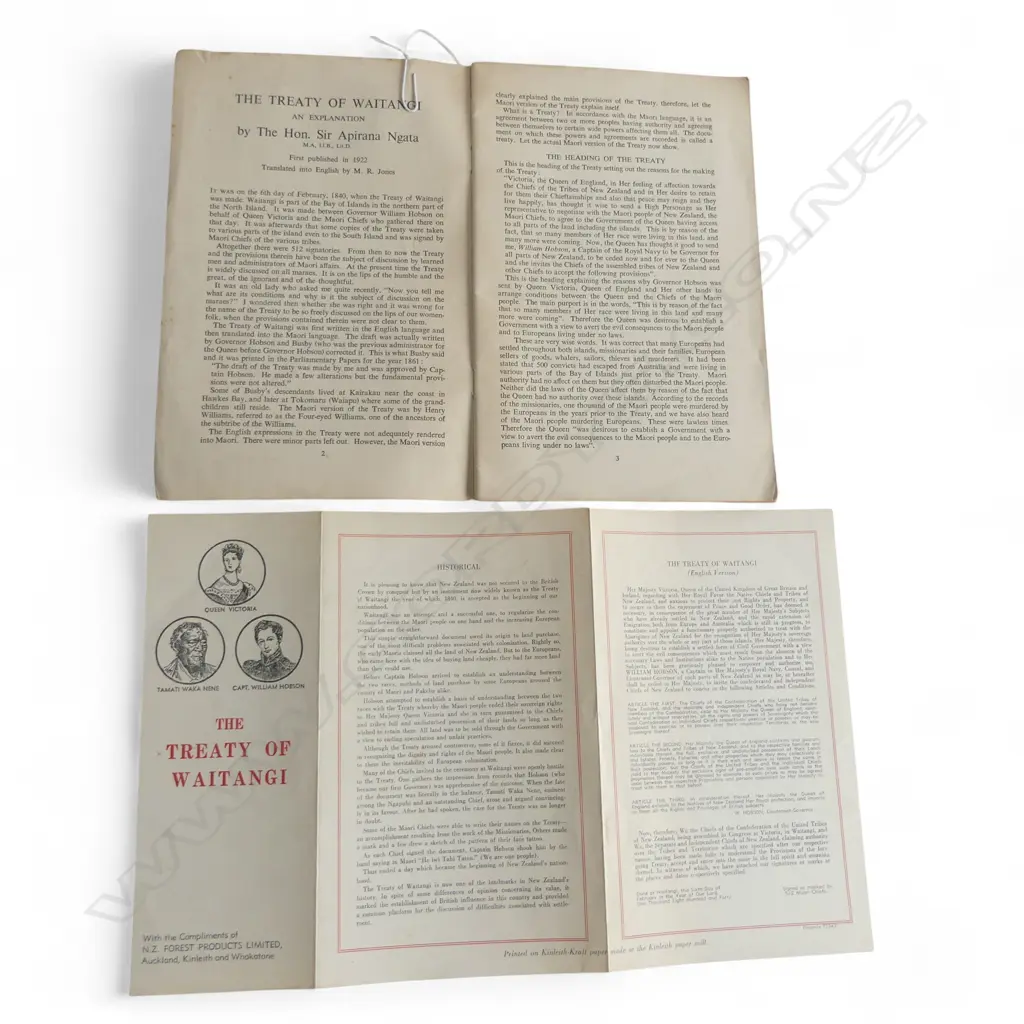 PAMPHLET 'THE TREATY OF WAITANGI AN EXPLAINATION' BY SIR APIRANA NGATA Published for The Maori Purposes Fund Board by Pegasus Press Christchurch. 31 pages 240x155mm First published 1922 this a later copy c.1950-60. Updated by Hamish Monday 9.20am