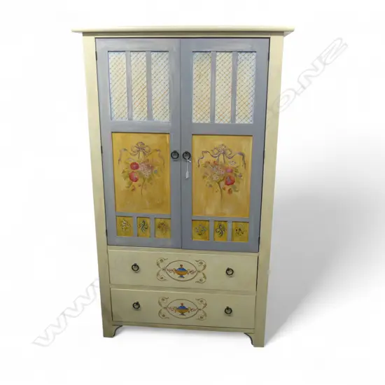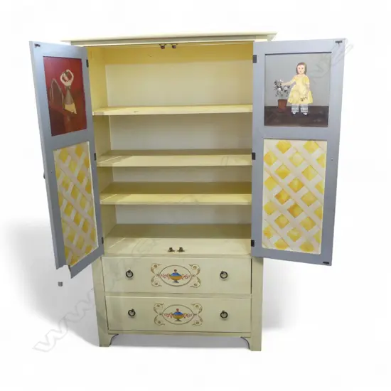 WHITE PAINTED WARDROBE WITH FLORALS AND YOUNG GIRL no back