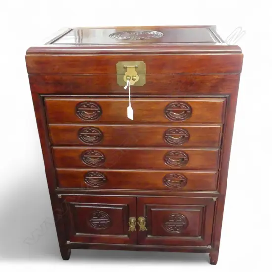 CHINESE MAHOGANY COLLECTORS CHEST H780MM L550MM