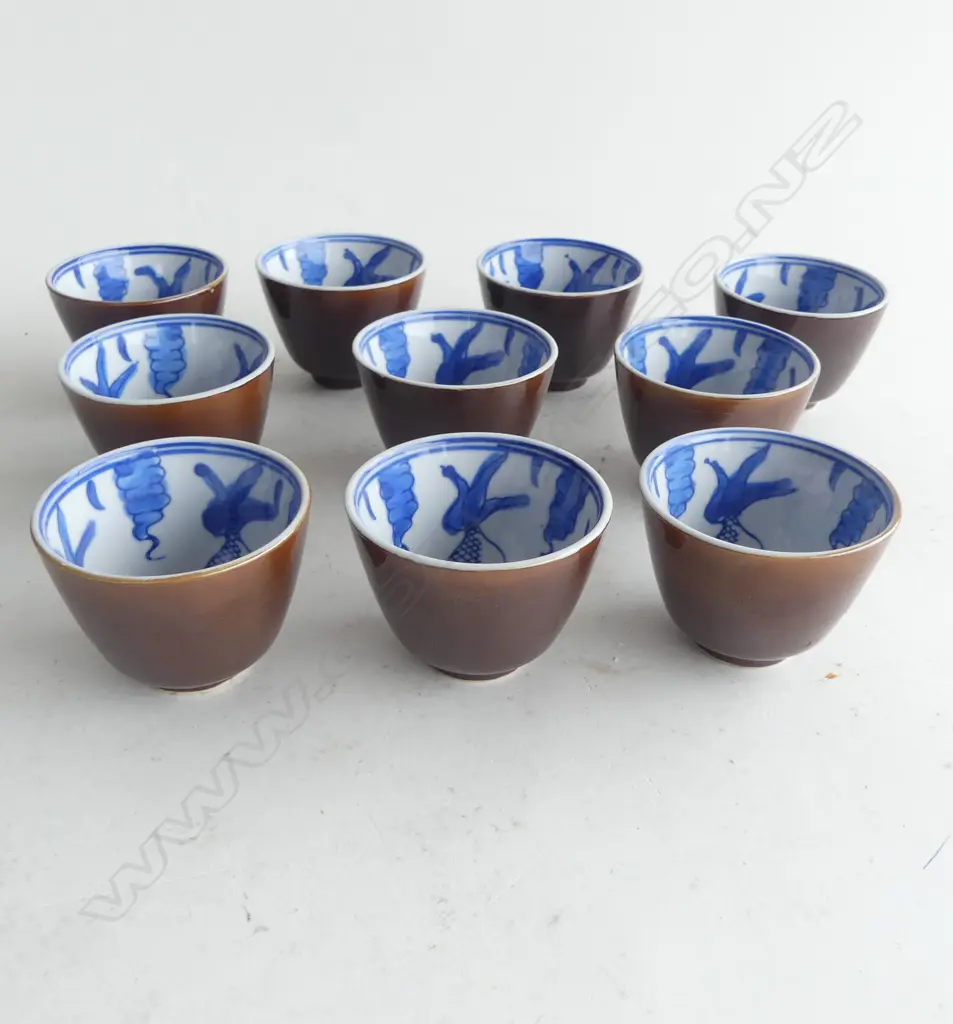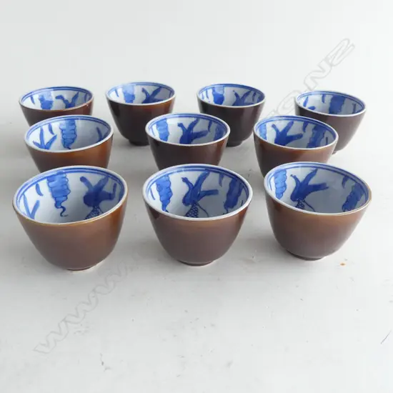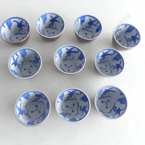 10 ORIENTAL B/W CUPS, LIDDED GINGER JAR H.145mm, CHEESEBOARD W.360mm