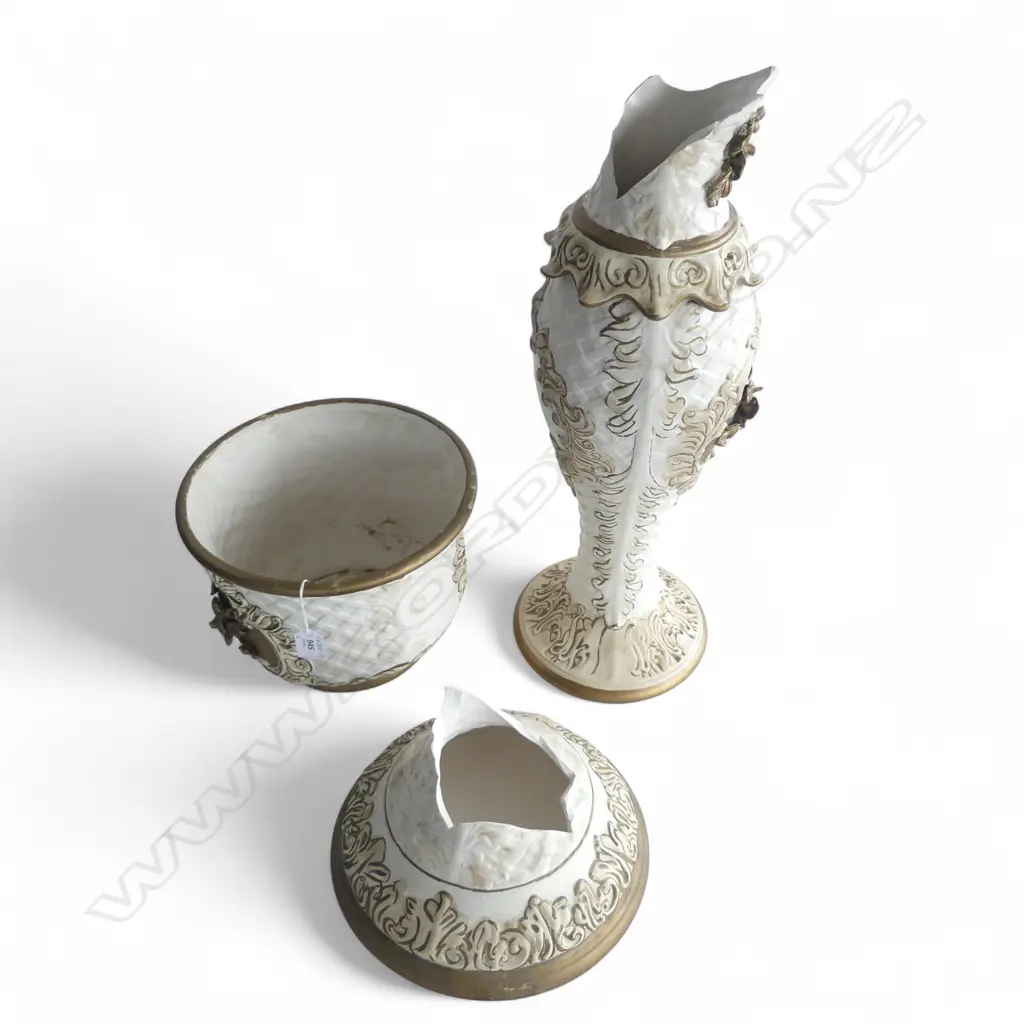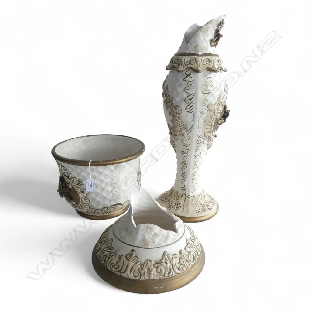 BEIGE & CREAM CAPODIMONTE JARDINERE on PEDESTAL STAND, H.840mm, Dia.260mm BASE IS BROKEN