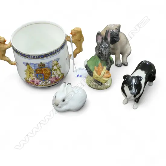 5 OVAL PLATTERS W.405mm + 2 GERMAN DISHES, PARAGON KING ED VIII LOVING CUP, 4 ANIMALS