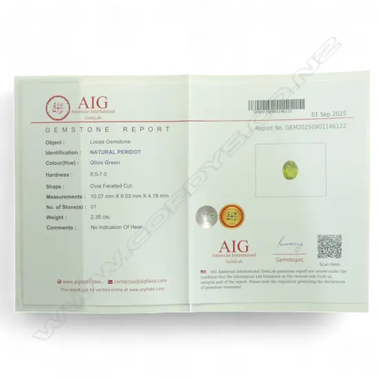 PERIDOT & CZ SILVER RING, AIG REPORT SIZE Q